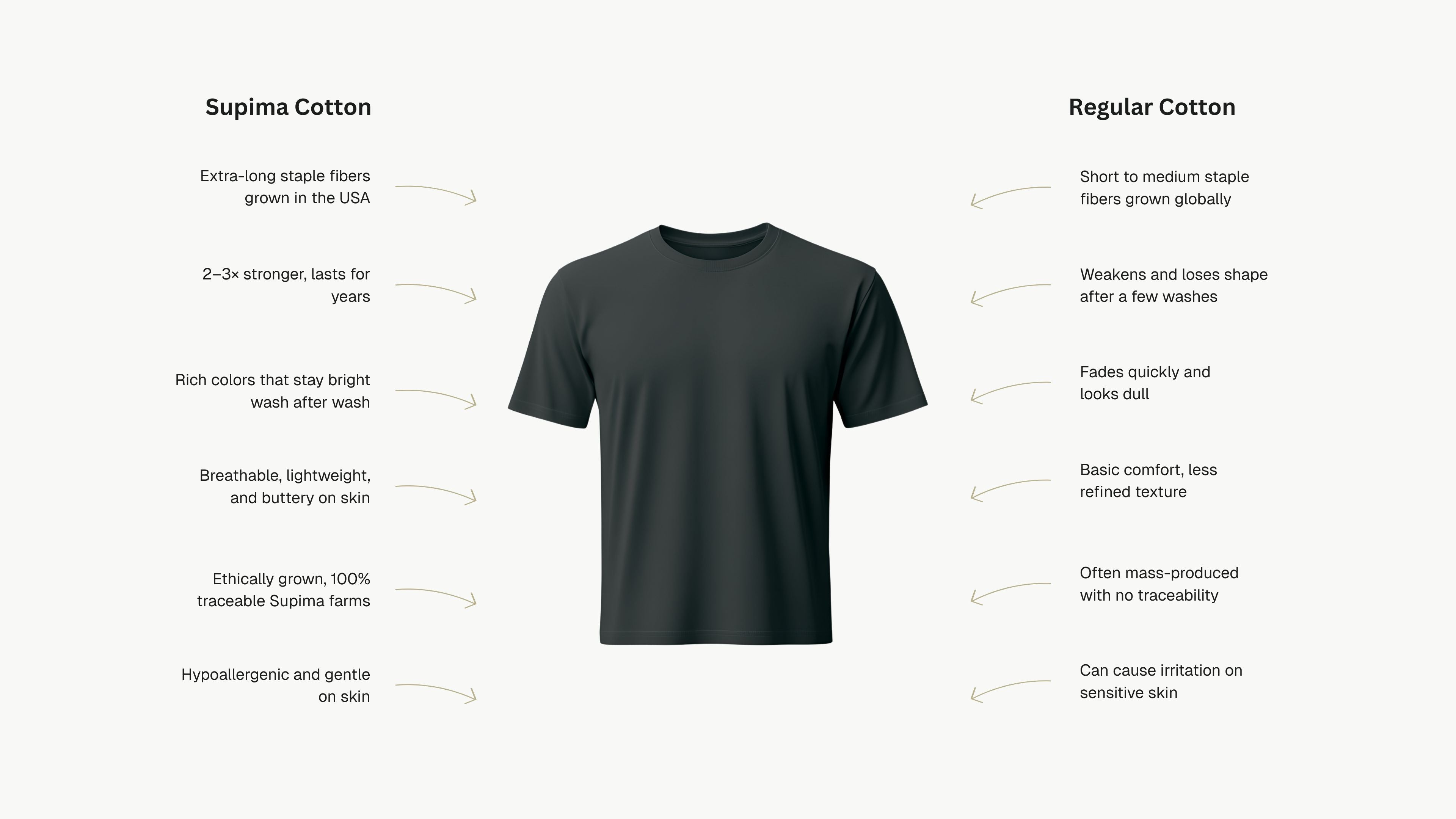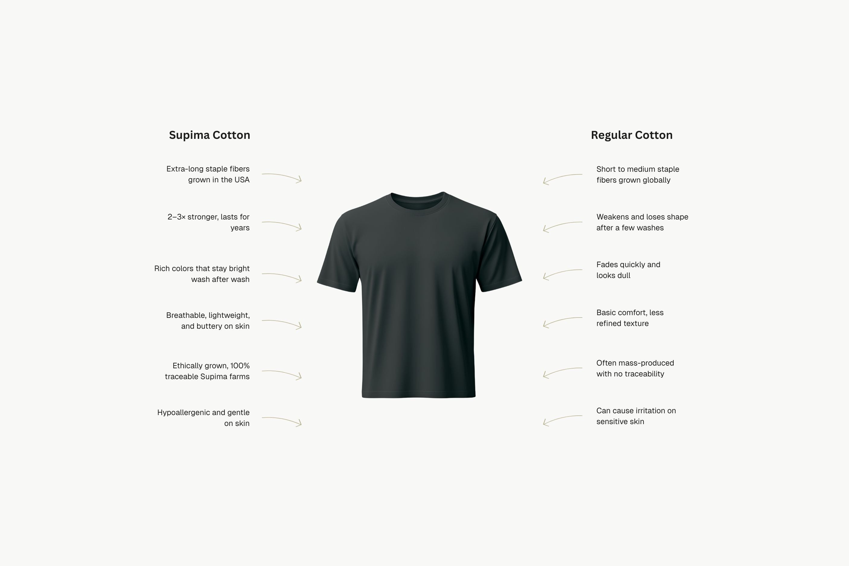 • Fabric: 100% Supima cotton. No blends.